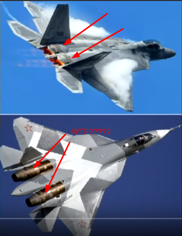 Как видно, у хваленого Су-57 движки торчат как.... Даже не знаю что. То есть раша-люфтвафля "светит" в инфракрасном диапазоне, как печка-буржуйка. С заявленной малозаметностью как-то не особо состыкуется. А такое уебанское расположение сих девайсов на раша-люфтвафле очень сильно влияет на ЭПР(не самым положительным образом). Да, насчет "новых" движков для говно-Су-57- россияне, что, конструкцию планера собираются менять, когда будут ставить? Ибо ЛЮБОЙ ТРД-движок «горячий». Задача конструкции стелс-самолета это как раз рассеивать ИК-излучение.Ибо есть такое понятие, как "аэродинамика". А для уменьшения инфракрасной сигнатуры будут забивать досками? Зашьют вагонкой? Та с Су-57 говна и без движков хватает- сама сущность малозаметности в том, чтобы из-за геометрии самолета к радару не возвращалась отраженная волна. У F-22 при расположении движков используется эффект интерференции, дабы сантиметровые волны, которые использует радар, гасились. Не знаю, может, раша-инженеры не слышали о понятии "интерференция"? Есть такое понятие как "уголковый отражатель"(америкосы при высадке на Луне установили их, ибо из-за этого эффекта отраженный сигнал идет четко к источнику)- в конструкции самолетов стелс в планере стараются не использовать прямых углов при соединении частей. У Раптора, например, между воздухозаборником и корпусом есть щель, дабы гасить отраженную волну. Тупорылые раша-инженеры с Су-57 до этого не додумались. Там с воздухозаборником чисто "уголковый отражатель".