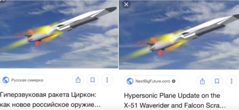 Ну, «Кинжал» вроде как в рашке есть- это переделанный под воздушный старт «Искандер». Правда, судя по всему, в единственном экземпляре, ибо очень пафосный запуск этой люфтвафли по раша-ТВ осуществлялся с носителя Миг-31ДЗ, а это так называемая «летающая лаборатория», ибо стандартный Миг-31 не имеет точек подвески под эту херню. Да, и ни про какой «гиперзвук» тут речи не может идти- ибо эта ракета на конечном участке траектории имеет скорость 3-4 М, а это никакой не гиперзвук. В общем, возможности на сегодняшний момент для активных головок самонаведения что-то «видеть», когда этот объект движется на гиперзвуке НЕТ. Пока эта проблема не решена. Правда, судя по всему, с точностью у этой херни как-то не очень- ибо на видео ракета падает в одну цель. А взрывается уже совершенно другой сарайчик.